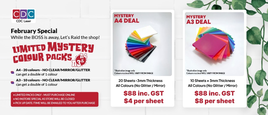 At CDC Laser we sell a huge array of acrylic sheets in Perth and custom-made projects like shop signage and custom stencils. Please note that our online selling page is just a portion of what we sell. We sell A4, A3, A1, and A2 sized sheets of every colour directly from our online and shopfront located in WANGARA Perth WA. So if there is something you require and you cannot see it on our page, don’t hesitate to call or email us and we can give you a custom quote for your specifications. To appreciate our range of colours it is best to come in-store or request a photo image of the colour in mind and we will email you directly to get the best idea of that specific colour.