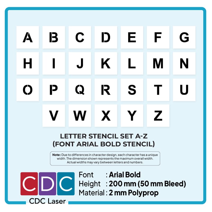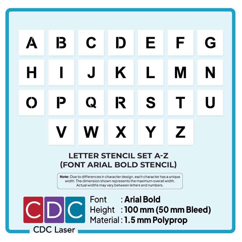 Our Alphabet Stencil Set (A–Z) in Arial Bold is made from durable poly material and designed for clean, professional marking results.