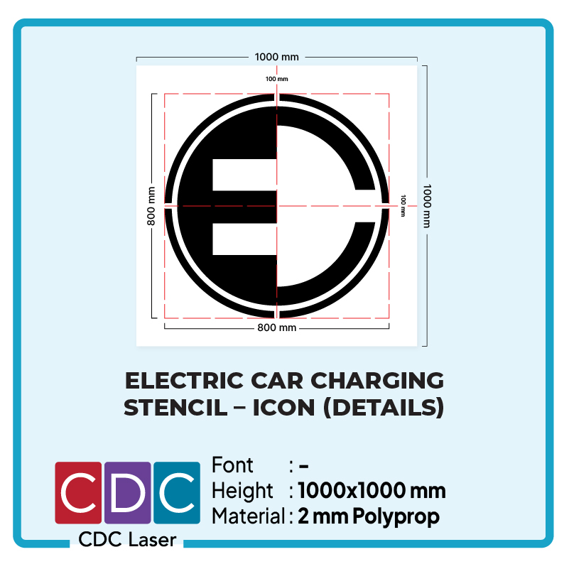 Our ELECTRIC CAR Charging Stencil – Icon is made from durable 2 mm poly prop material, designed for clear, professional markings.